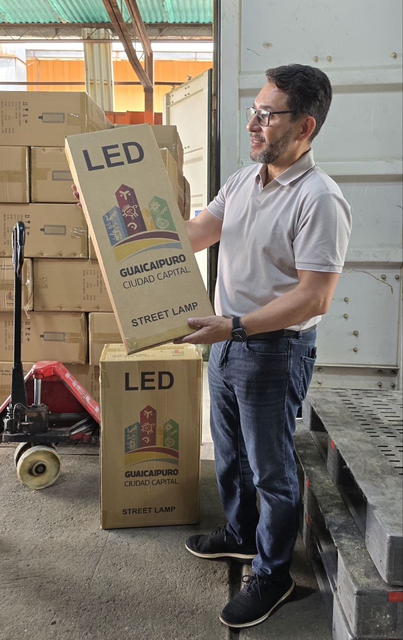 El mandatario local destacó que esta adquisición forma parte de los convenios estratégicos de cooperación internacional y del compromiso asumido para transformar al municipio en una Ciudad Capital moderna, iluminada y segura. Este importante lote de insumos será desplegado de manera inmediata en las siete parroquias guaicaipureñas.
