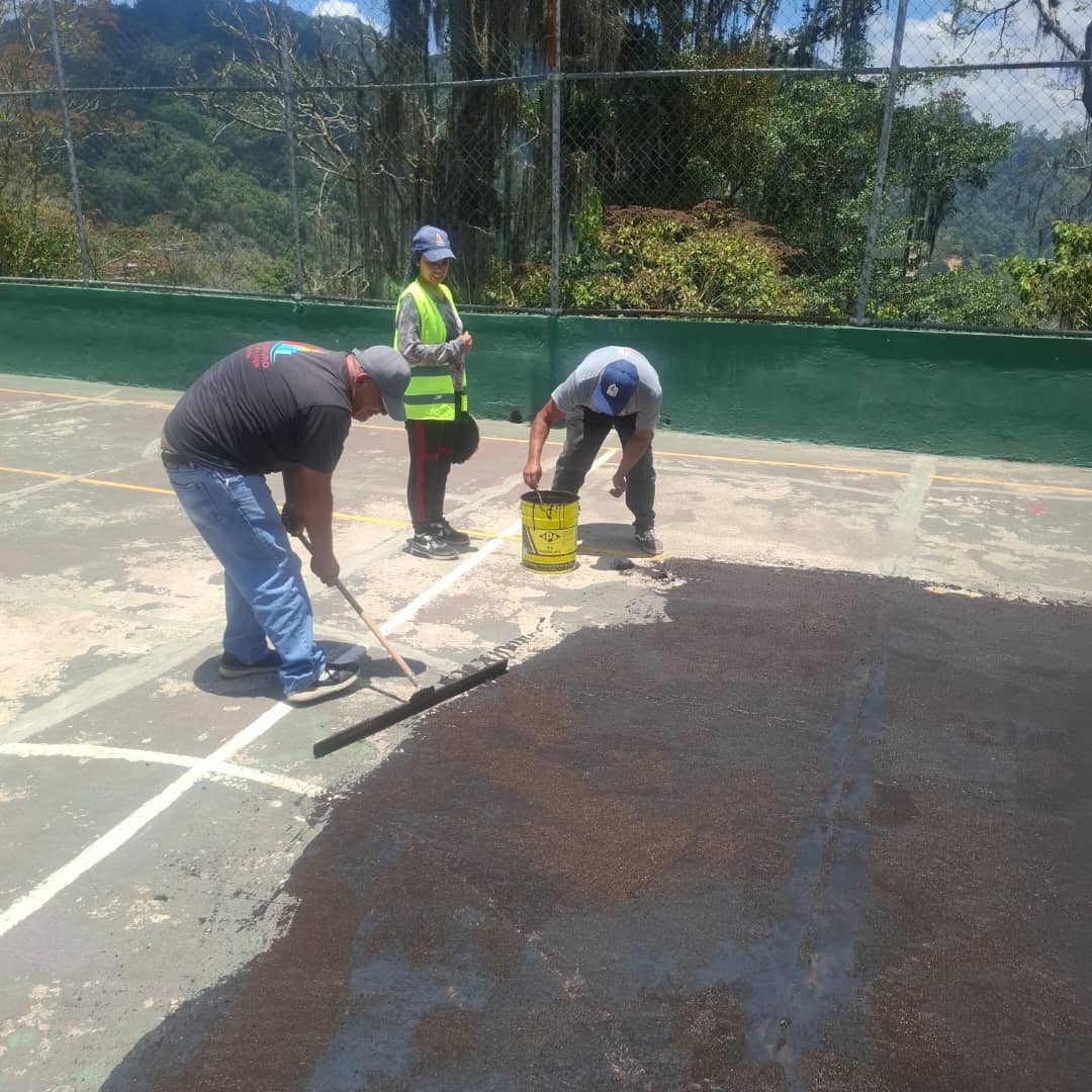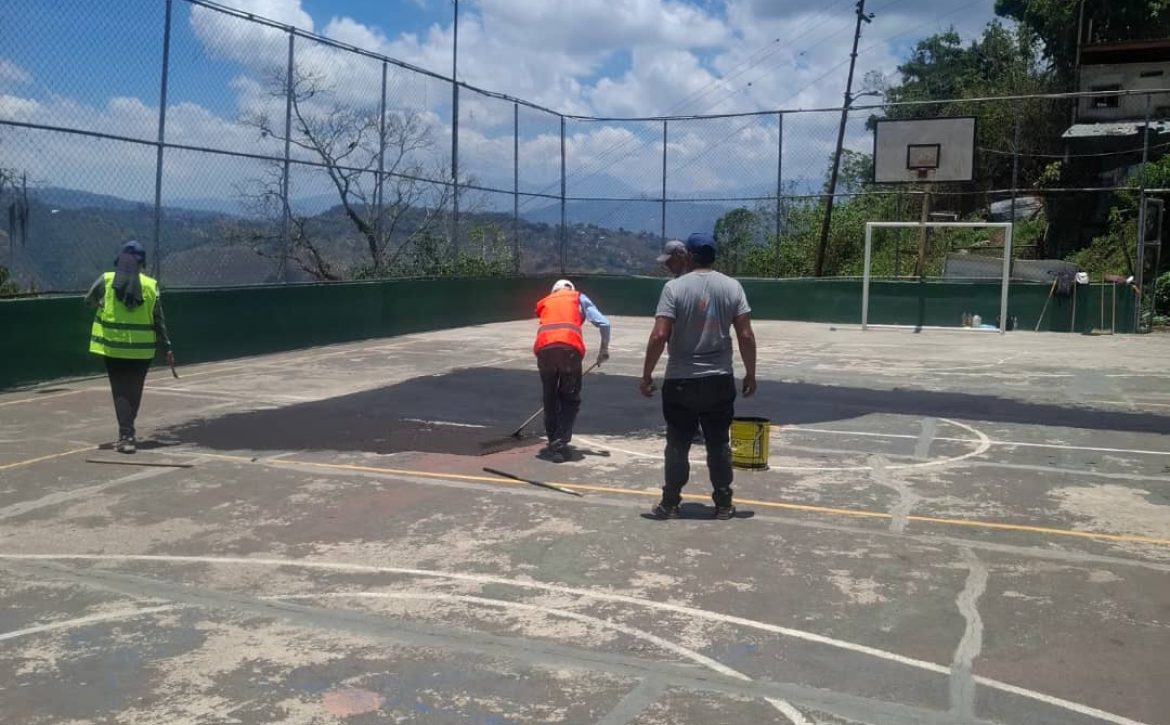 Las cuadrillas de mantenimiento ejecutan actualmente labores de nivelación con la colocación de transicapa en la cancha de El Naranjal, en pro de garantizar una superficie óptima antes de proceder con la pintura y demarcación técnica de este espacio deportivo de la parroquia Cecilio Acosta.