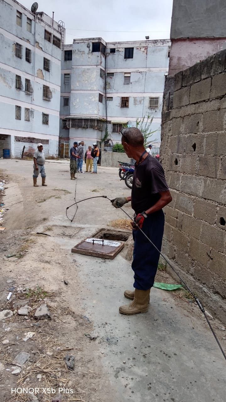 El despliegue también alcanzó los bloques 15 y 16, donde se realizó el destape y mantenimiento profundo de la línea principal y tanquillas que presentaban colapso. Estas maniobras de limpieza especializada eliminan focos de contaminación y garantizan el correcto funcionamiento del sistema de aguas residuales.